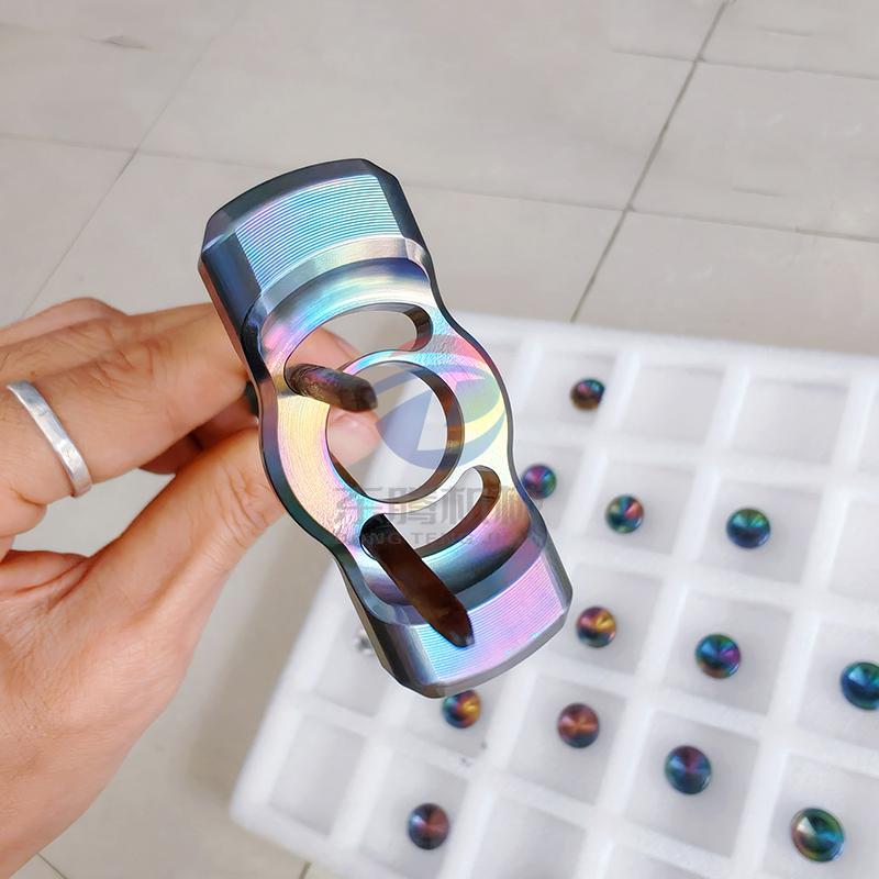 工艺上,钛工艺品常采用阳极氧化、蚀刻、喷砂、锻造等技术。无需颜料涂层,仅通过精准控温与电流,即可在表面生成稳定氧化膜,呈现蓝、紫、绿、金等幻彩渐变,色泽随光影流转。经手工精雕细琢,线条流畅、质感冷峻温润,兼具金属冷冽与艺术柔和。